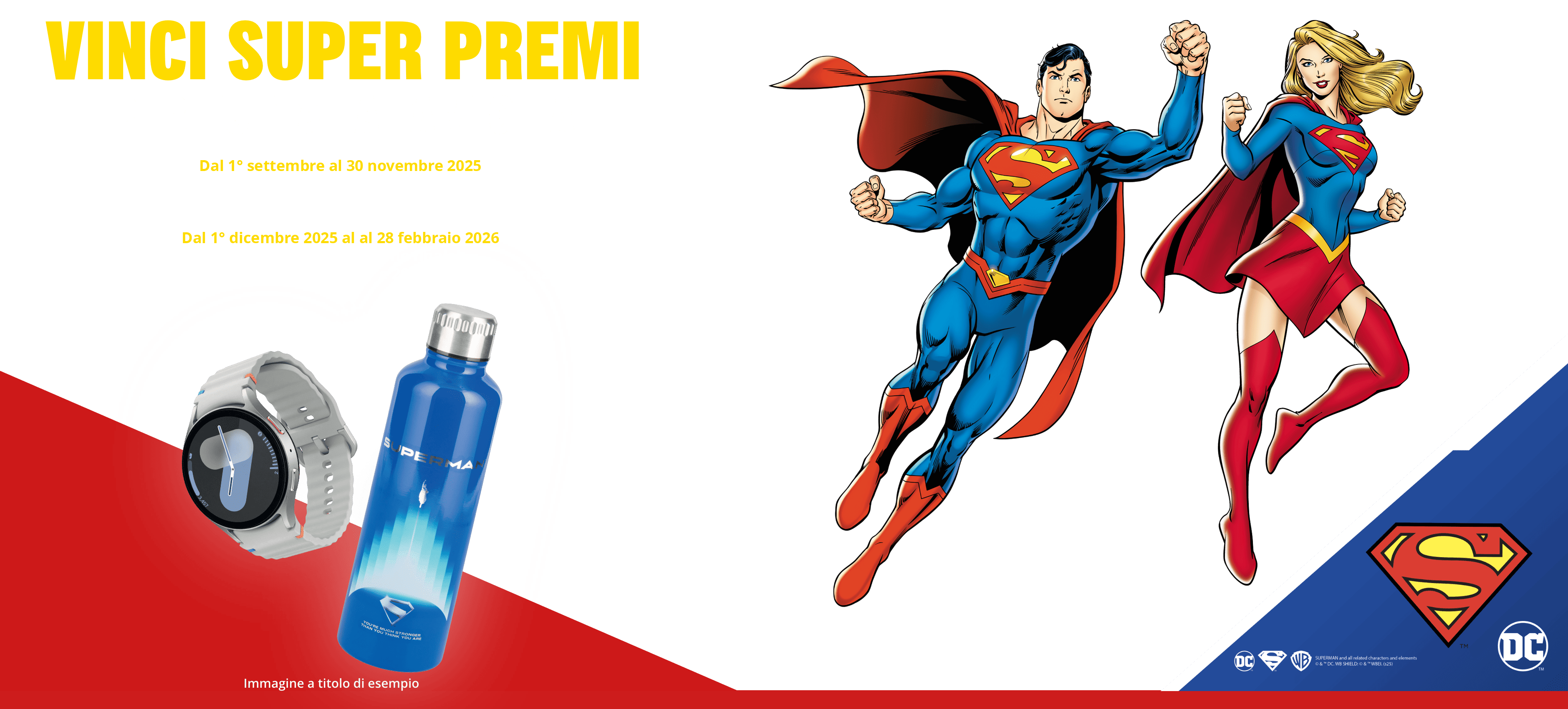- Fase instant win: 45 Samsung Galaxy Watch7 (valore 349 €) e 480 borracce Superman (valore 21,99 €).