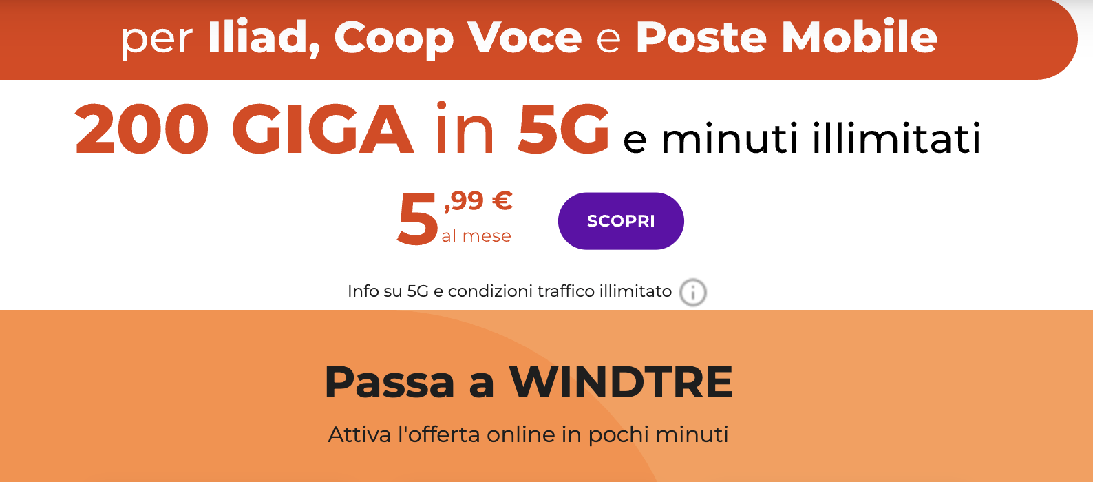 WindTre 200 GIGA 5G e minuti illimitati a 5,99€: l'offerta choc!